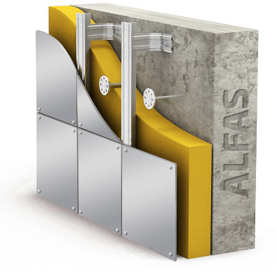 Непосредственно сам процесс происходит по принципу крепления материала к подготовленному каркасу, который выполняется из алюминиевого профиля, а не на саму стену здания. Этот современный материал имеет множество цветов и фактур, для реализации любых дизайнерских решений. Выполняя монтаж в промежуток между стеновой поверхностью и утеплителем укладывают теплоизолятор, а также в обязательном порядке гидроизоляцию.