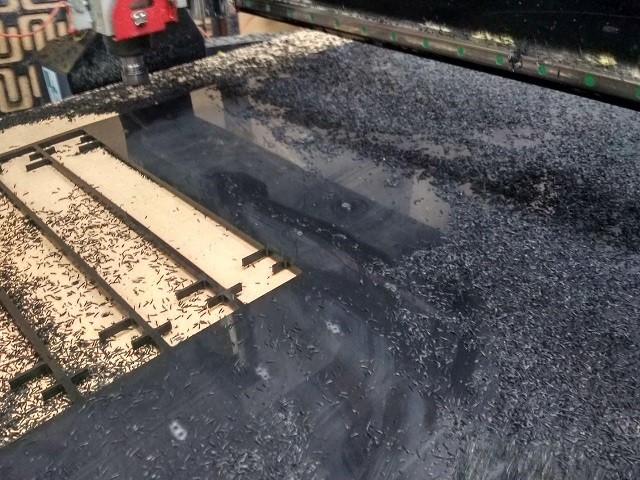 Обратите внимание, что длинна траектории движения фрезы далеко не всегда рассчитывается как длинна линий в чертеже. Если требуется выполнить элементы с выборкой (отверстия или пазы с фрезеровкой на глубину меньше толщины заготовки) траектория движения фрезы существенно усложняется, количество погонных метров фрезеровки может увеличиться в разы.